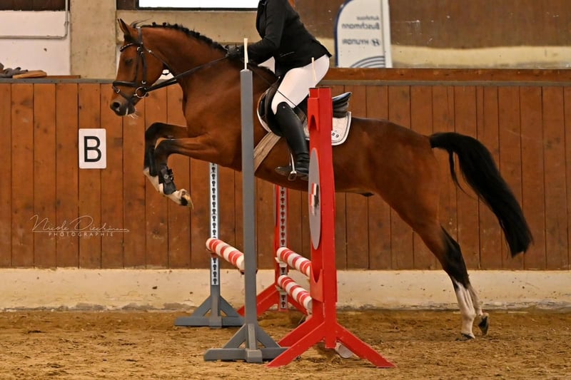 Zum Verkauf steht unser 5-jähriger, 1,60 m großer Hesselteich Wallach. Er überzeugt durch sein ausgeglichenes Wesen und ist im täglichen Umgang stets brav und unkompliziert. Auch jüngere Reiter kennt er bereits und zeigt sich dabei zuverlässig und rittig. Im Oktober stellte er sich erstmals auf einem Turnier vor und konnte sich direkt im Springreiterwettbewerb, mit einer noch unerfahrenen Reiterin, eine Platzierung sichern. Dabei bewies er Nervenstärke und Leistungsbereitschaft. Er kennt zudem das Gelände und zeigt sich auch dort souverän. Aktuelle, gute Röntgenbilder liegen vor. Gesundheitlich gab es bei uns keinerlei Probleme.