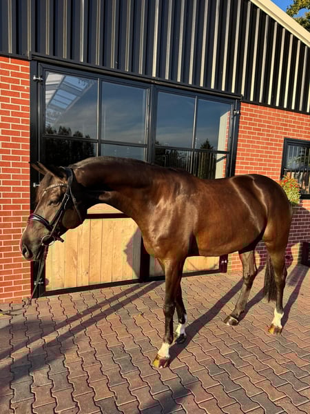 Aus gesundheitlichen sowie zeitlichen Gründen muss ich mich leider von diesem wunderschönen Wallach namens Linstagram, Spitzname Loui trennen. Loui ist im Jahr 2018 geboren und hat ein Stockmaß von 1,74m. 2 1/2 jährig ist er in meinen Besitz übergegangen, mit 3 1/2 Jahren wurde er von mir angeritten und bekam dann nochmal ein Jahr auf der Wiese zum wachsen . Vier und fünfjährig war er viel im Gelände. Außerdem stand er zu diesem Zeitpunkt mit einer anderen Stute in einem Selbstversorger Offenstall. Letztes Jahr sind wir in einen anderen Stall umgezogen (Standort des Pferdes in Eibergen, Niederlande kurz hinter Vreden), Boxenhaltung mit ganzjährigem Weidegang, dort bin ich angefangen ihn Dressurmäßig zu arbeiten. Aktuell befindet er sich auf Dressurpferde L Niveau, Traversalen sowie Wechsel begonnen. Auf Lehrgängen habe ich ihn mitgenommen, bei denen er sich vorbildlich benommen hat, auf Turnieren wurde er noch nicht vorgestellt da meinerseits keine Turnierambitionen bestehen. Loui sollte 2 jährig für die Körung vorbereitet werden, hier wurden insgesamt 25 Röntgenbilder in der Tierklinik Telgte gemacht, alles ohne Befund und mit Einser TÜV. 4 jährig hatte er sich auf der Wiese eine leichte Sehnenverletzung bei der einige Sehnenfasern verletzt waren zugezogen. Dies wurde durch die Klinik in Hochmoor begleitet. 4 1/2 Jährig durfte er wieder antrainiert werden. Er ging nie lahm auf dem Bein. Aktuell liegt eine AKU vor ohne Röntgenbilder, diese ist auch ohne Befund. Ich möchte Loui an jemanden verkaufen mit Familienanschluss, er soll nicht als reines Sportgerät dienen. Ich wünsche mir jemanden der ihm ein 5* zu Hause bieten kann und wo es ihm an Kuscheleinheiten sowie anderen pferdigen Freunden an nichts fehlt und wo er weiter gefördert wird. Reitvideos werden in kürze gemacht. Ein Probereiten findet aus zeitlichen Gründen nur bei ernsthaften Kaufinteresse statt, wobei 50€ berechnet werden. Diese werden beim Kauf gutgeschrieben. Außerdem kann das Equipment, Equiline Sattel, Trense, Schabracken, Decken usw. mitbeworben werden. Platz vor Preis. Bei weiteren Fragen stehe ich Ihnen gerne zur Verfügung.