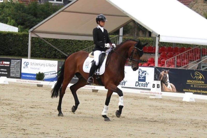 Dressurwallach-7 Jahre jung -ca1,75 m- siegreich in DPF L Großrahmig, Sportlich moderner Wallach mit drei sehr guten Grundgangarten ausgestattet. Dieses Nachwuchspferd bringt tolle Möglichkeiten für den Reiter mit, der ihm noch etwas Zeit geben möchte bis er mit seinem großen Körper im Einklang steht… Auf Turnier zeigte er sich unerschrocken ist im Umgang ein wahrer Schatz! Schmiede und verladefromm. Ein Pferd mit viel Perspektive für die Zukunft!