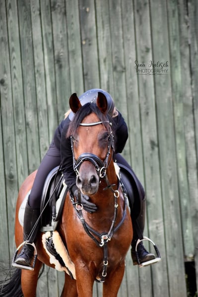 Zum Verkauf steht wegen Umstiegs auf ein Großpferd unser Reitponywallach Dante. Ursprünglich als Dressurpony gezogen, freut er sich trotzdem über ein paar kleine Sprünge zur Abwechslung. Aufgrund seines edlen, schmalen Exterieurs ist er kein Gewichtsträger. Dante geht sowohl alleine und in der Gruppe ins Gelände und hat bereits erfolgreich Turniererfahrung gesammelt. Auch in fremden Hallen und auf fremden Plätzen lässt er sich problemlos reiten. Er ist verlade- und schmiedefromm, im Umgang freundlich und seinem Menschen sehr zugewandt. Dante möchte fair und fein geritten werden. Unter dem Sattel kann er gelegentlich umweltorientiert sein, ist dabei jedoch nie böse. Das Pony ist kein reines Kinderpony; ein Mutter-Tochter-Gespann können wir uns gut vorstellen. Dante ist regelmäßig geimpft, die Zähne werden jährlich kontrolliert und Osteopathie ist ihm bekannt. Er besitzt einen auf ihn angepassten Dressursattel (16,5 Zoll), den er nach Möglichkeit gern mitnehmen würde, in sein neues Zuhause. Bei weiteren Fragen stehe ich gerne zur Verfügung.