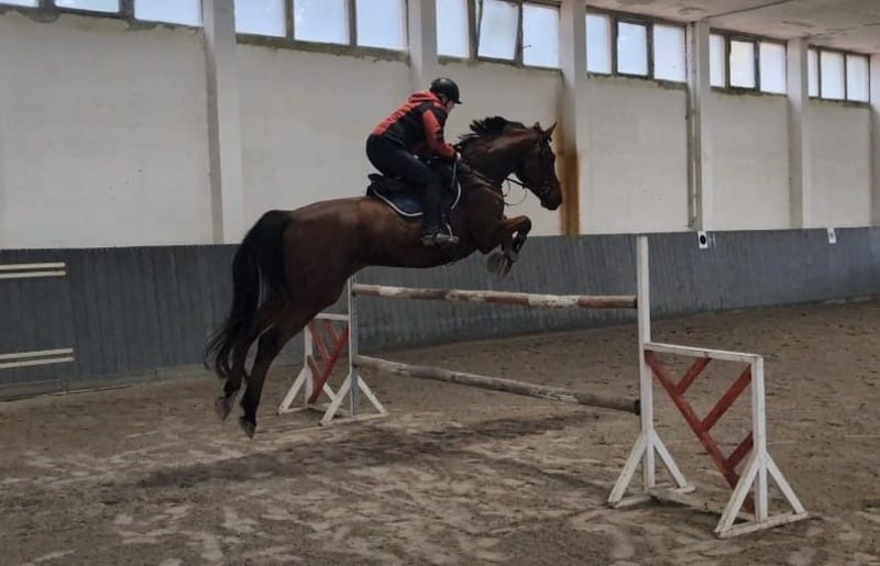 Picture of the first half steps Alvaro is a performance-ready 8-year-old gelding. He always wants to please his rider and brings a lot of joy. He has three good basic gaits and also jumps well. He is a well-bred gelding standing at approximately 1.75m. He is very fine to ride, responsive to all aids, and always eager to understand what the rider wants from him. He is also likely interesting for eventing, but he has not been further trained in that discipline with us. So far, he has only competed for one season due to the rider's absence. He has only been presented in show jumping competitions at the A level. Currently, he masterfully meets all the requirements of the L level in dressage and show jumping. He works well with both a rubber bit and a water snaffle or double bridle, always light in the contact. He shows a very high level of collection, especially in canter. (Flying changes started, canter pirouettes started, half-pass started) All strong gaits can already be ridden out well. With a bit of fine-tuning on the flying changes, he will soon be ready for the M level. He jumps up to 120cm in training without any problems. In free jumping, there are hardly any limits. He has not yet been officially assessed.