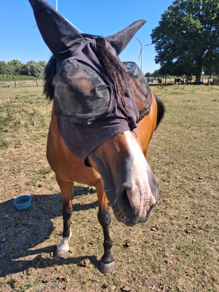 **Verkaufsanzeige: Deutsches Reitpferd – Stute** Zum Verkauf steht eine wunderschöne, braune Stute mit schönen und soliden Grundgangarten. Mit einem Stockmaß von 157 cm ist sie das ideale Freizeitpferd. Sie mag Ausritte aber auch die Arbeit in der Halle. Dabei braucht sie jedoch immer jmd, der ruhig ist, da sie auch gerne etwas nervös wird wenn es um neue Eindrücke und Situationen geht. Daher ist sie kein Anfängerpferd oder für Kinder geeignet. Ich habe sie seit 4 Jahren und sie war stets freundlich und dem Menschen zugewandt. Die Stute lässt sich fein reiten und ist immer mit Herz und Seele dabei. Sie ist brav im Umgang, sowohl beim Führen als auch beim Satteln und Trensen. Pferd inkl Zubehör abzugeben. Nur in liebevolle Hände abzugeben und keine Händler. Wegen Krankheit von mir, ist sie momentan wenig trainiert. Bei Interesse oder weiteren Fragen freue ich mich über Ihre Nachricht.