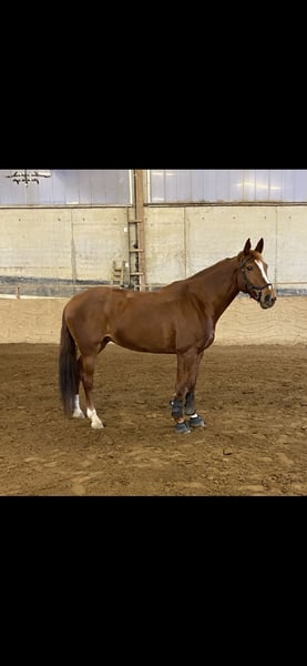 Casey ist eine 11 Jährige Fuchsstute und 161 cm groß. Ihre Abstammung ist leider nicht bekannt. In den letzten Jahren wurde sie Freizeitmäßig geritten, dabei zeigte sich, dass Casey konsequente Arbeit mit einem Reiter braucht, der über harmloses Testen hinweg reiten kann. Im Gelände hat sie etwas Go, bleibt aber händelbar. Seit einigen Wochen im professionellem Beritt wurde mit Stangenarbeit/Springen begonnen. Da zeigt Casey viel Freude und Talent. Ein aktueller TÜV liegt nicht vor, sie ist noch nicht als Turnierpferd eingetragen. Standort 32425 Minden Videos gerne per WhatsApp unter 0176-70349915