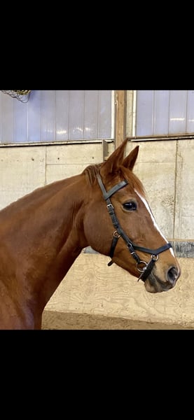 Casey is an 11-year-old chestnut mare standing at 16.1 hands. Her pedigree is unfortunately unknown. In recent years, she has been ridden primarily for leisure, demonstrating that she requires consistent work with a rider who can handle some testing behavior. Out in the field, she has some go but remains manageable. Since a few weeks, she has been under professional training, and groundwork and jumping exercises have been introduced. Casey shows a lot of enthusiasm and talent for these activities. No current veterinary certificate is available, and she is not yet registered as a competition horse. Location: 32425 Minden Videos available via WhatsApp at 0176-70349915