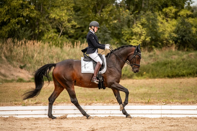 A stunning 10-year-old mare by Tannenhof’s Fahrenheit out of Wolkentanz I is available for sale. She confidently masters all elementary dressage movements up to L** level and has achieved successful results in competitions at both L on bit and double bridle, with scores up to 8.2. From a young age, she has been regularly presented at dressage horse classes A and L, progressing to L** level, and has consistently placed in all classes. She impresses with an outstanding trot characterized by rhythm and elasticity, as well as a good walk and canter, all combined with a high degree of expression. Additionally, she is soft in the hand and easy to ride in contact. This mare is a reliable, well-mannered horse, which makes her easy to ride, though she does require some experience. She needs a rider who can provide her with calmness and confidence in stressful situations, so she is not suitable for beginners or riders without trainer support. She is in excellent health, fully fit, and has no health issues. We will only hand over the mare to the best possible new owner who can provide her with the appropriate environment, including sufficient movement and daily turnout. You can reach me all day via WhatsApp or by phone after 4 p.m. at 0178 3341458.