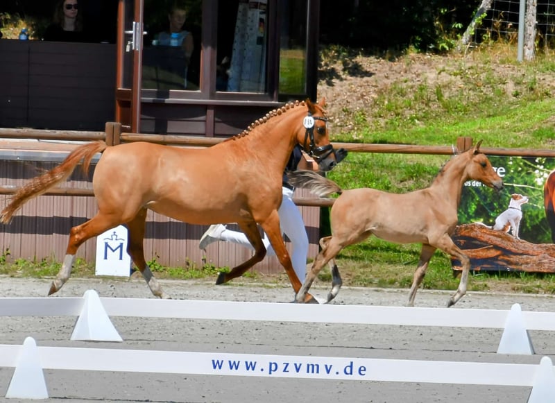 Zum Verkauf steht diese wunderbare Reitponystute für die Zucht und Freizeit von Golden State 2 x FS Don’t Worry. Diese hübsche Fuchsstute ist 11 Jahre alt & 140cm groß. Bei uns ist sie geboren, aufgewachsen & zwei Mal Mutter geworden von ausgezeichneten Elitefohlen. Ihr diesjähriges Fohlen aus unserem eigenen Zuchthengst begeistert uns total, indem die Coolness des Vaters & die zierliche Leichtigkeit von ihr vererbt wurde. Die Stute ist bei uns freizeitmäßig geritten. Zum aktuellen Stand wird sie gerade nach der Fohlenpause antrainiert & geritten von zwei kleinen Mädchen. Sie ist absolut ein Mädchenpony zum Verlieben. Wir wünschen uns für sie ein tolles neues Zuhause, indem sie geliebt und weiter gefördert wird. Bei weiteren Fragen stehe ich Ihnen gerne zur Verfügung.