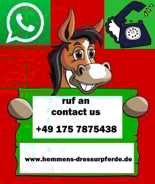 Il tuo cavallo stallone da sogno + la nostra cavalla = IL TUO CAVALLO IDEALE Da noi hai la possibilità di abbinare cavalle da dressage con genetica di successo al tuo stallone preferito. *OFFRIAMO LINEE DI SANGUE DA DRESSAGE DA LINEE DI STAMPI AFFIDABILI* Convinciti della qualità delle nostre linee di sangue presso: www.hemmens-dressurpferd.de Interesse??? Chiamaci pure al numero: +49 1757875438 Claudia e Burkhard Hemmen