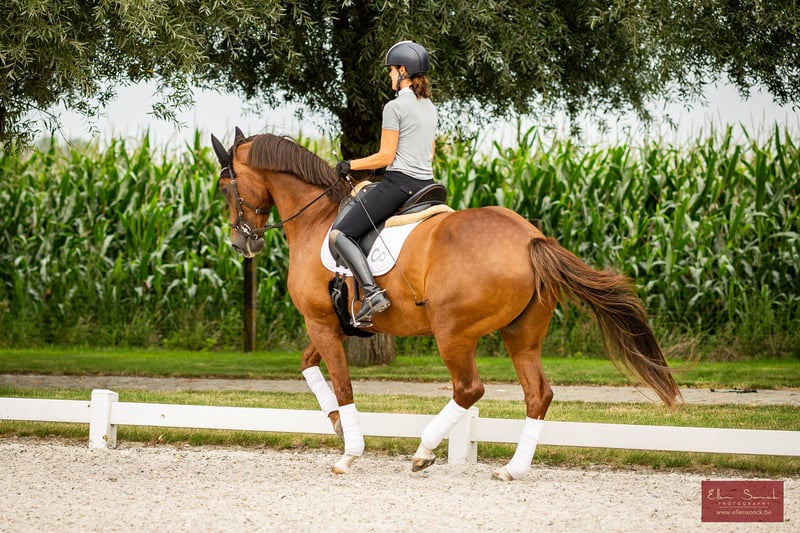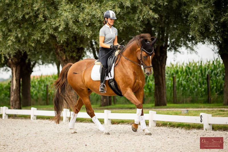 For sale – Johnson mare 13 years old with whom you can still grow together! As I want to focus on the young horses and have limited space, I am looking for a golden home for Jadore where she will receive the appreciation she deserves. An ideal mare for the transition from pony to horse. Pedigree: Johnson x Elite mare Oldenburg as BWP Kirmen de Mars – Kaiser Karl x Littorio. Directly from the breeder. Sport career Jadore is currently in training for Prix St. Georges. The series may still need a bit more confirmation, but the talent is present. She has a lot of potential for piaffe and passage. Mother Kirmen de Mars has competed at INTER II and masters all Grand Prix exercises. Character & type – Willing mare with the necessary blood and a top character. – Height: 1.67m. – Ideal for an ambitious rider looking for an honest, golden mare. One that can still grow together in the sport. Breeding Jadore is also interesting for breeding. In 2017, she produced a beautiful filly by For Romance. In 2023, she had a lovely filly by Escanto PS (yearling available for viewing here). Mother Kirmen de Mars is also available for viewing at the stable. Medical – RX approved at 4 years of age, no remarks. – New examination allowed at the buyer's expense. Price: High price range Region: Wingene (BE) Serious interest? Feel free to send a private message. Video available via Whatsapp.