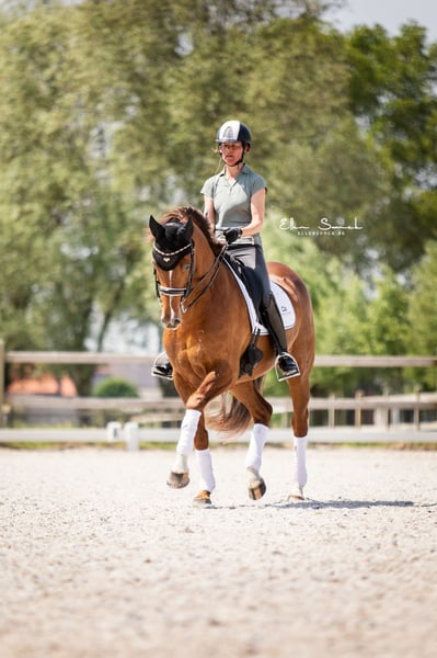 Zu verkaufen – Johnson-Stute, 13 Jahre alt, mit der Möglichkeit, gemeinsam zu wachsen! Da ich meinen Fokus auf die jungen Pferde legen möchte und Platzmangel habe, suche ich für Jadore ein liebevolles Zuhause, wo sie die Wertschätzung bekommt, die sie verdient. Ideale Stute für den Übergang von Pony zu Pferd. Abstammung: Johnson x Elite-Stute Oldenburg als BWP Kirmen de Mars – Kaiser Karl x Littorio. Direkt vom Züchter. Sportkarriere Jadore befindet sich derzeit in der Ausbildung zum Prix St. Georges. Die Serien dürfen noch etwas mehr gefestigt werden, aber das Talent ist vorhanden. Sie hat viel Begabung für Piaffe und Passage. Die Mutter Kirmen de Mars hat INTER II geritten und beherrscht alle Übungen der Grand Prix. Charakter & Typ – Arbeitswillige Stute mit dem nötigen Blut und einem Top-Charakter. – Stockmaß: 1,67 m. – Ideal für einen ehrgeizigen Reiter, der eine ehrliche, goldene Stute sucht, mit der man in der Sport zusammen wachsen kann. Zucht Jadore ist auch für die Zucht interessant. 2017 brachte sie ein wunderschönes Stutfohlen von For Romance zur Welt. 2023 brachte sie ein wunderschönes Stutfohlen von Escanto PS (Jährling hier zu besichtigen). Die Mutter Kirmen de Mars kann ebenfalls im Stall besichtigt werden. Medizinisch – RX-geprüft im Alter von 4 Jahren, keine Beanstandungen. – Neue Untersuchung auf Kosten des Käufers erlaubt. Preis: Hohe Preisklasse Region: Wingene (BE) Seriöses Interesse? Schicken Sie gerne eine private Nachricht. Video über Whatsapp.