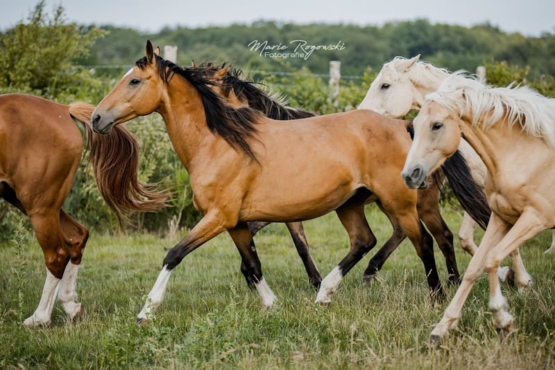 Cheval de selle allemand | Buckskin | 2011 | 158 cm Génétique de la couleur : E/x A/x Cr/n MELISANDE GF est une jument expressive, athlétique, dotée d'allures de base très bonnes. C'est une jument poulinière confirmée avec une descendance convaincante - sa fille de couleur buckskin née en 2020 est également à vendre. Du côté paternel, elle descend de l'étalon hanovrien Laurencio, du côté maternel de Marigold GF, une jument issue du programme d'élevage du haras Falkenhorst.