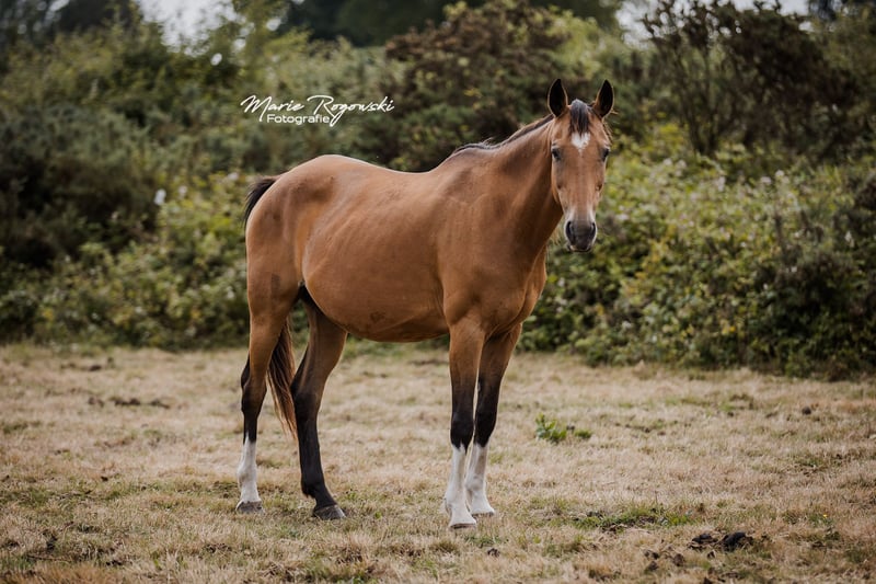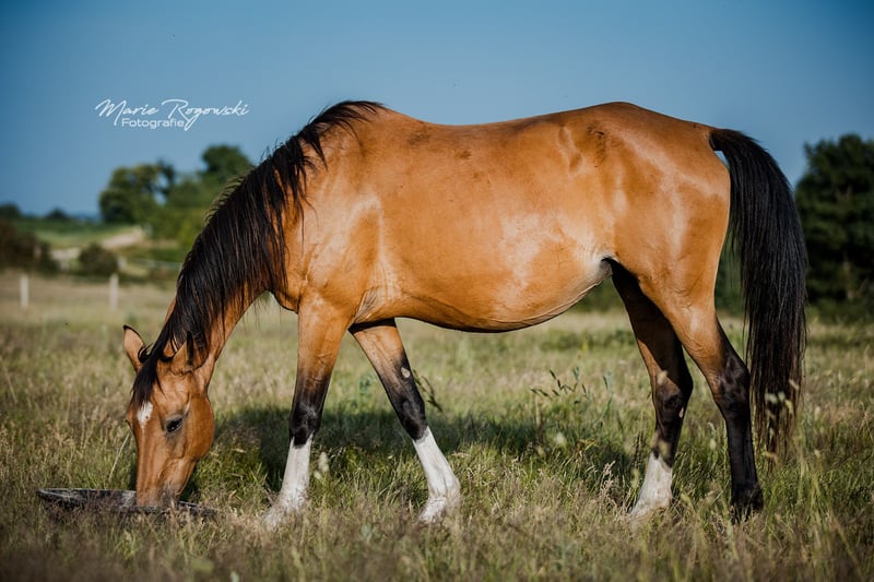 Deutsches Reitpferd | Buckskin | 2011 | 158 cm Farbgenetik: E/x A/x Cr/n MELISANDE GF ist eine ausdrucksstarke, sportlich gebaute Stute mit sehr guten Grundgangarten. Sie ist eine bewährte Mutterstute mit überzeugender Nachzucht - ihre buckskinfarbene Tochter aus 2020 steht ebenfalls zum Verkauf. Väterlicherseits stammt sie ab vom Hannoveraner Hengst Laurencio, mütterlicherseits von Marigold GF, einer Stute aus dem Zuchtprogramm des Gestüts Falkenhorst.