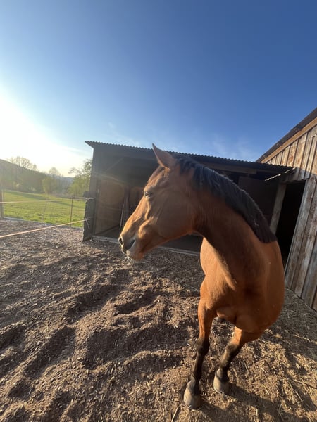 **Verkaufe deutsches Reitpferd – vielseitige Freizeitstute** Zum Verkauf steht eine charmante und gut ausgebildete deutsche Reitpferdestute, die durch ihre angenehme Art und ihr vielseitiges Können überzeugt. Geboren im Jahr 2010, präsentiert sie sich in einem schönen braunen Farbton und hat ein Stockmaß von 156 cm, was sie zu einer idealen Partnerin für Freizeit und entspannte Ausritte macht. Diese gut gerittene Stute ist bestens geeignet für Reiter, die Wert auf ein zuverlässiges und ausgeglichenes Pferd legen. Sie verfügt über eine solide Grundausbildung und zeigt sich im Umgang sowie im Gelände stets freundlich und gelassen. Dank ihrer angenehmen Größe ist sie sowohl für fortgeschrittene Freizeitreiter als auch für Einsteiger mit Erfahrung eine hervorragende Wahl. Ob für gemütliche Ausritte in der Natur, entspannte Dressurmäßiege Arbeit oder die tägliche Arbeit im Gelände – diese braune Reitstute überzeugt durch ihre Ruhe, ihren Charme und ihre Bereitschaft, den Reiter auf jeder Tour zu begleiten. Sie ist gesund, gepflegt und freut sich auf eine neue, liebevolle Familie. Ich wünsche mir für sie, eine nette junge Familie, gerne wo sie Kinder glücklich machen kann. Bei Interesse oder für weitere Informationen stehe ich gerne zur Verfügung. Eine Besichtigung und Proberitte sind nach Absprache möglich.