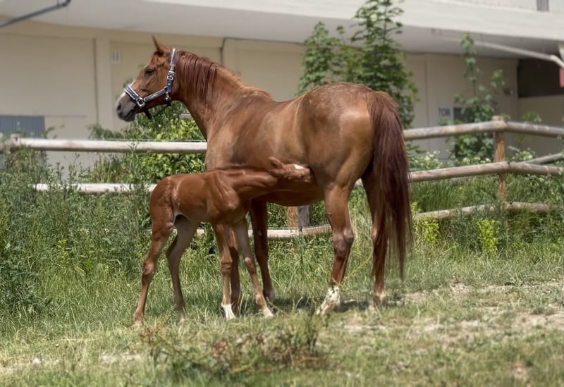 Imposing, stylish, and energetic filly with charm and presence! Beautiful foal, born June 12, 2025, by Syriano out of E.H. Gribaldi / Schwadroneur, from Sunshine by Sanssouci / Weltrat / Weltmayer. This young filly has been raised naturally and appropriately in a herd environment. She shows herself to be very people-oriented, curious, and lively, with beautiful conformation and a very attractive, charming appearance! Her sire Syriano boasts an outstanding pedigree featuring top stallions, has competed successfully in sport himself, and already produces high-quality, sport-oriented offspring with excellent results! A young horse with an excellent pedigree and quality, now looking for a dedicated handler! Video available upon request via WhatsApp! Additional high-quality foals and young horses from the breeder are also for sale.