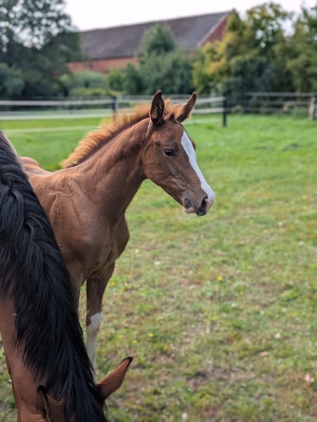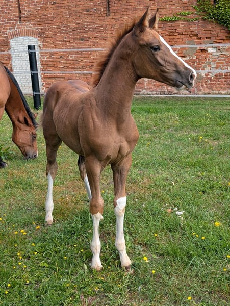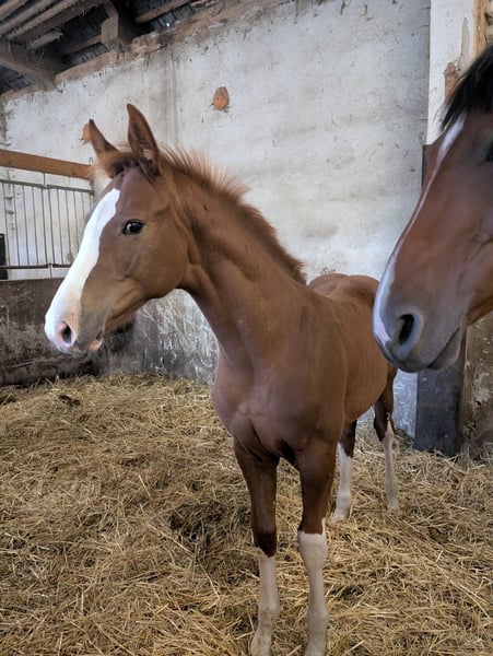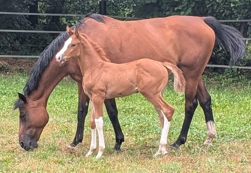 Diese sportlich gezogene junge Stute steht ab jetzt zum Verkauf. Easy S ist eine sehr ausdrucksstarke Stute,welche mit viel schick sich zu präsentieren weiß.Sie hat einen sehr elastischen Bewegungsablauf und dadurch 3 super Grundgangarten. Am 17.06.2025 ist sie geboren und wächst im kleinen Herdenverband auf. Das Aufhalftern,Führen und Hufe auskratzen gehört zum täglichen Programm.Sie ist eine sehr neugierige und aufgeweckte Stute und ist auch prämiert. Wir wünschen uns ein förderndes und gutes Zuhause,da diese Anpaarung auf eine sportliche Karriere hoffen lässt und wir als Züchter viel Herzblut in unsere Zucht stecken. Easy S Vater : Esmeraldo (Holsteiner Siegerhengst) Abstammend von Emerald van't Ruytershof x Caretino-Lord Ihre Mutter,Dalu (Staatsprämienstute Bild 7 und 8), ist siegreich bis Klasse M gelaufen und erhielt die Auszeichnung DSP Sport. Ihre 6 jährige Schwester von Comme il faut,konnte im letzten Jahr auch schon ihre ersten Platzierungen in den Springpferde A Prüfungen erreichen. Bei Fragen können sie gern Anrufen 0174 38 65 222
