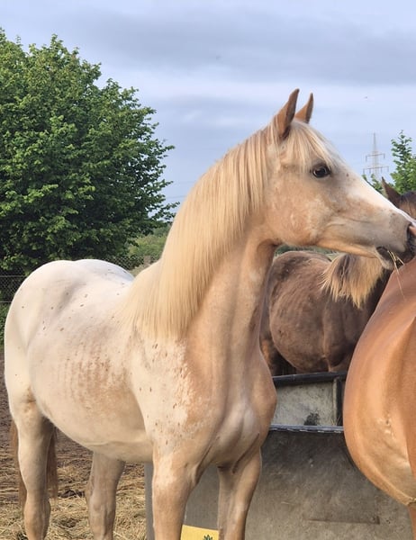 Cora "Coralie" es una cría verdaderamente excepcional, resultado de la combinación perfecta entre mi yegua de cría de Haflinger, probada en competición y colocada en niveles de doma hasta la categoría L, y Carlson, un Knabstrupper de gran tamaño con pedigrí de caballo de deporte. Fue premiada y altamente elogiada en la exposición de potros del ZFDP, destacando su excelente conformación. Se espera que alcance una estatura de entre 1,55 m y 1,60 m, una talla muy adecuada, y gracias a su elegante y a la vez sólida estructura, será una montura adecuada para cualquier jinete. Ha heredado el hermoso pelaje largo de Haflinger y el color espectacular de su padre, combinando lo mejor de ambos mundos. Estoy convencido de que este caballo estará perfectamente preparado para cualquier tarea futura y hará muy feliz a su próximo propietario. Actualmente aún en estado bastante crudo, pero cuenta con la atención regular del herrero, veterinario, etc. Está vacunada, desparasitadda, con pasaporte de equino y toda la documentación en regla. ¡A un precio muy atractivo antes de que comencemos a trabajar con ella en verano!