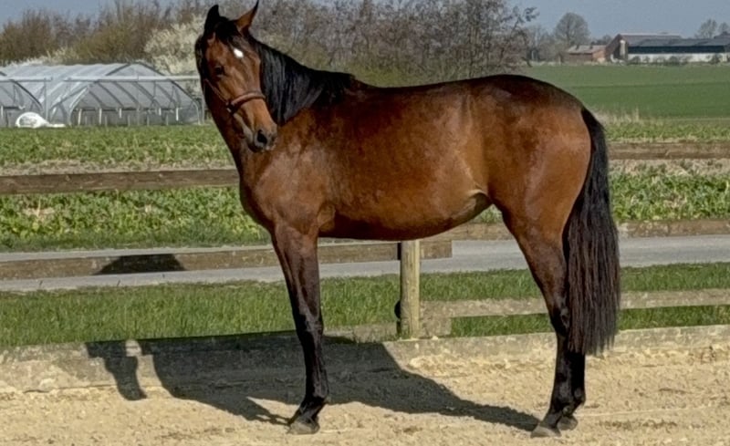 Zum Verkauf steht eine elegante, großrahmige 2-jährige Dressurstute mit aktuell ca. 163 cm Stockmaß und interessanter Dressurabstammung. Die Stute stammt ab von Velvedere x Dream On und vereint damit bewährte Dressurgenetik mit modernem Typ und Perspektive. Sie überzeugt besonders durch: • einen sportlich-modernen Körperbau • ein korrektes Fundament • eine schöne Oberlinie • sowie eine ansprechende Ausstrahlung Die Stute ist roh, zeigt sich im täglichen Umgang jedoch brav, unkompliziert und altersentsprechend gelassen. Sie wächst im Herdenverband auf und kennt die grundlegenden Abläufe im täglichen Umgang. Aufgrund ihrer Abstammung und ihres Typs eignet sie sich ideal als Nachwuchspferd für den Dressursport oder für Züchter. Ein interessantes Pferd für alle, die sich ein junges Talent selbst ausbilden möchten.