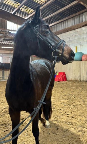 Vendo caballo de doma alemán – yegua, nacida en 2023 Se ofrece una hermosa yegua de doma alemana, nacida en 2023. La yegua destaca por su elegante presencia y su prometedora genealogía. Con una altura de 1,55 m, es ideal para todas las disciplinas ecuestres. Gracias a su excelente linaje, también resulta interesante para la cría. Actualmente, ya está acostumbrada con suavidad a la limpieza, al trabajo en la cuerda y al trabajo en el picadero. La yegua es amigable, aprende con rapidez y posee un temperamento agradable. Está sana, vacunada regularmente y disfruta de caricias humanas. Si está interesado o desea más información, no dude en contactarme. La visita puede realizarse previa cita.