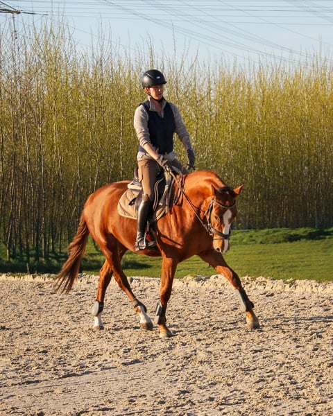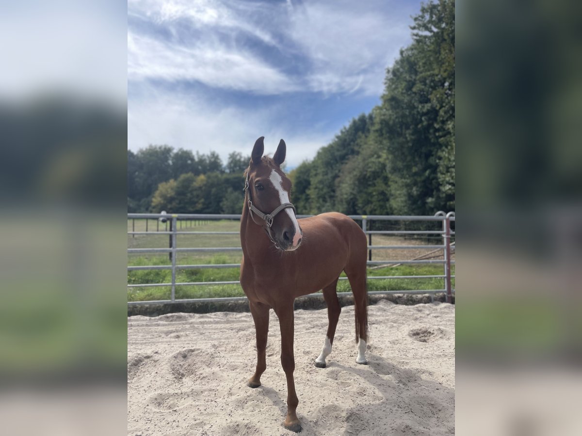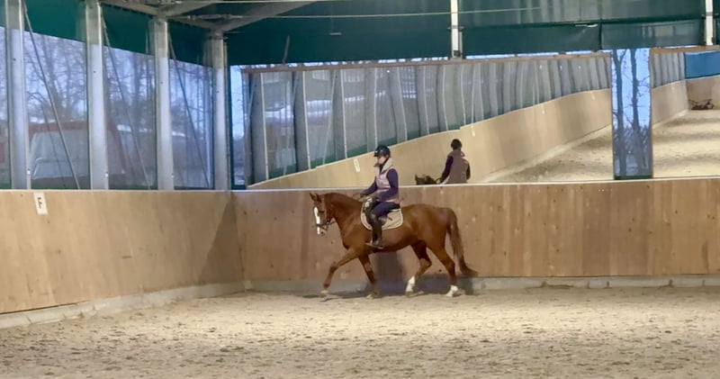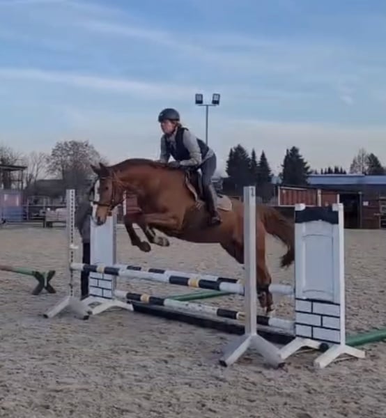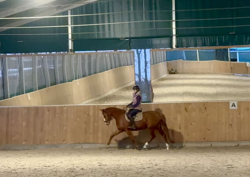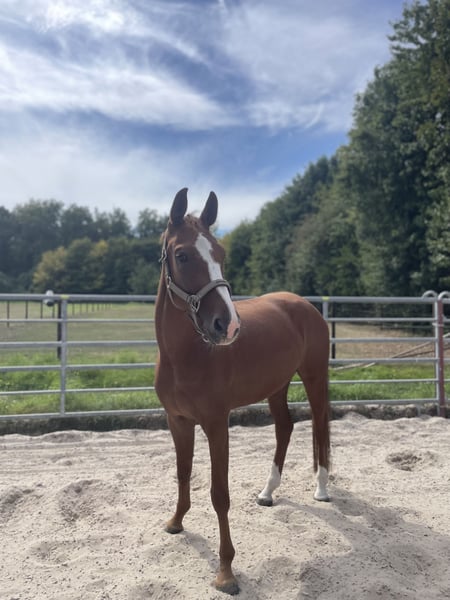 Zum Verkauf steht eine vielversprechende 5-jährige Stute von Sir Heinrich x Polytraum mit bestem Charakter und viel Herz. „Socke“ wurde Anfang 4 jährig schonend angeritten und ist jetzt ca. 1/2 Jahr konstant unter dem Sattel. Sie wird ca. drei bis vier Mal pro Woche mit viel Ruhe und Geduld weiter gefördert. Damit steht sie noch am Anfang ihrer Ausbildung und freut sich auf einen erfahrenen feinfühligen Reiter. Die Stute zeigt sich dabei stets lernwillig und neugierig. Im täglichen Umgang ist sie unkompliziert, lieb im Handling und dem Menschen positiv zugewandt. Sie kennt Stangenarbeit und springt bereits kleine Kreuze mit Freude. Eine tolle junge Partnerin für ambitionierte Reiter, die sich ein verlässliches, feines Nachwuchspferd wünschen, das Spaß an der Arbeit hat und noch viel Potenzial für die Zukunft bietet. Bei ernsthaftem Interesse oder für weitere Informationen stehe ich zur Verfügung. Kleine Befunde Alter: 5 Jahre Abstammung: Sir Heinrich x Polytraum Stockmaß: ca. 165 cm Einsatzbereich: Dressur / Springen / Freizeit / Allrounder