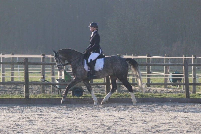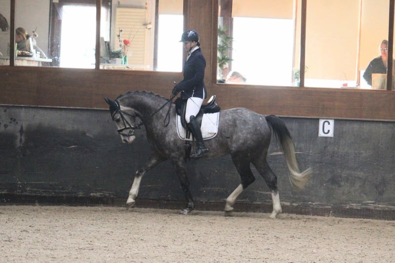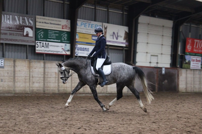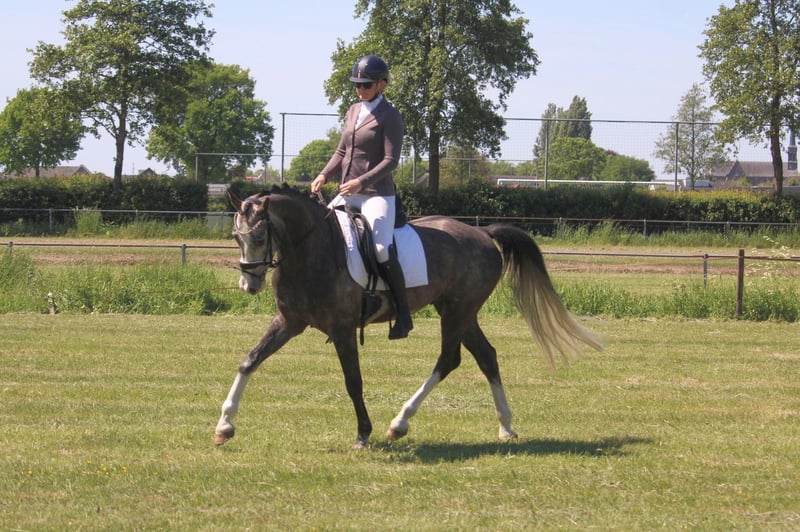 Sehr hübsches, fein bewegendes Warmblut, 1,63 / 1,64 m groß, kompakt gebaut – das ideale Damenpferd / Übergangspferd vom Pony zum Pferd, um in der Dressur zu glänzen. Sein Vater ist der deutsche Zuchtstammhengst Basalt R, ein Shagya-Araber, und seine Mutter ist vollständig deutsch warmblütig, mit Abstammung von Quarterback (v. Quarterman Brand) x Wolkentanz I. Er ist sehr angenehm zu reiten, mit angenehmer Arbeitsbereitschaft. Momentan hat er seine ersten L2-Wettkämpfe absolviert, und wir verfeinern derzeit alles im Training und arbeiten an einigen M-Übungen. Außerdem zeigt er eine gute Springqualität und springt eine kleine Parcoursrunde von etwa 70 cm. Derzeit liegt unser Fokus hauptsächlich auf der Dressur, daher beschäftigen wir uns mit dem Springen momentan weniger. Ausritte macht er ebenfalls sehr gern, und er ist gegenüber dem Verkehr, der hier vorbeifährt, nicht ängstlich. Charakterlich ist er ein ehrliches, sanftes und freundliches Tier, das immer Lust hat, etwas zu tun. Besichtigung in Wijk und Aalburg möglich. Alle (Re-)Körungen erlaubt.
