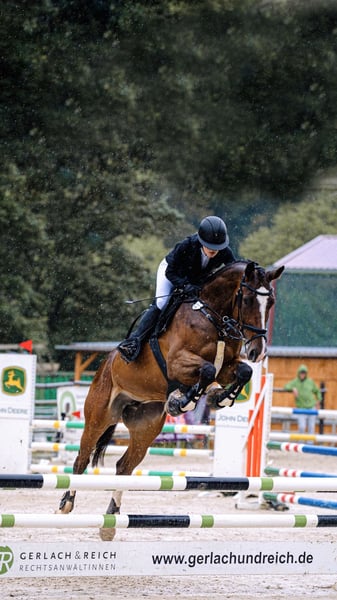 For an experienced amateur, a dream horse with a lot of heart and potential. Cassedyy started her sporting career later due to the previous owner's lower competition ambitions, but has since proven herself in every way. She is currently being regularly presented at competitions and always does a fantastic job. She is always honest over jumps, always wants to get to the other side, and gives her rider a secure feeling. This season, she shone with a victory in the L-class show jumping (score 8.5), numerous placements and wins in A-jumping, and consistently high scores in style competitions. "Cassy" is the perfect horse for an experienced amateur and is ready to be ridden immediately. She consistently collects placements and is a reliable horse even in higher tasks. With further training, we see her progressing in the L and also in the M category. A comprehensive vet check, including back examination, was performed at my purchase 1.5 years ago, with no findings. She has been regularly competing in sports since then and has never had any issues. Videos and further information can be obtained at 0173 5827226. Not suitable for beginners. She will only be given to the best hands.