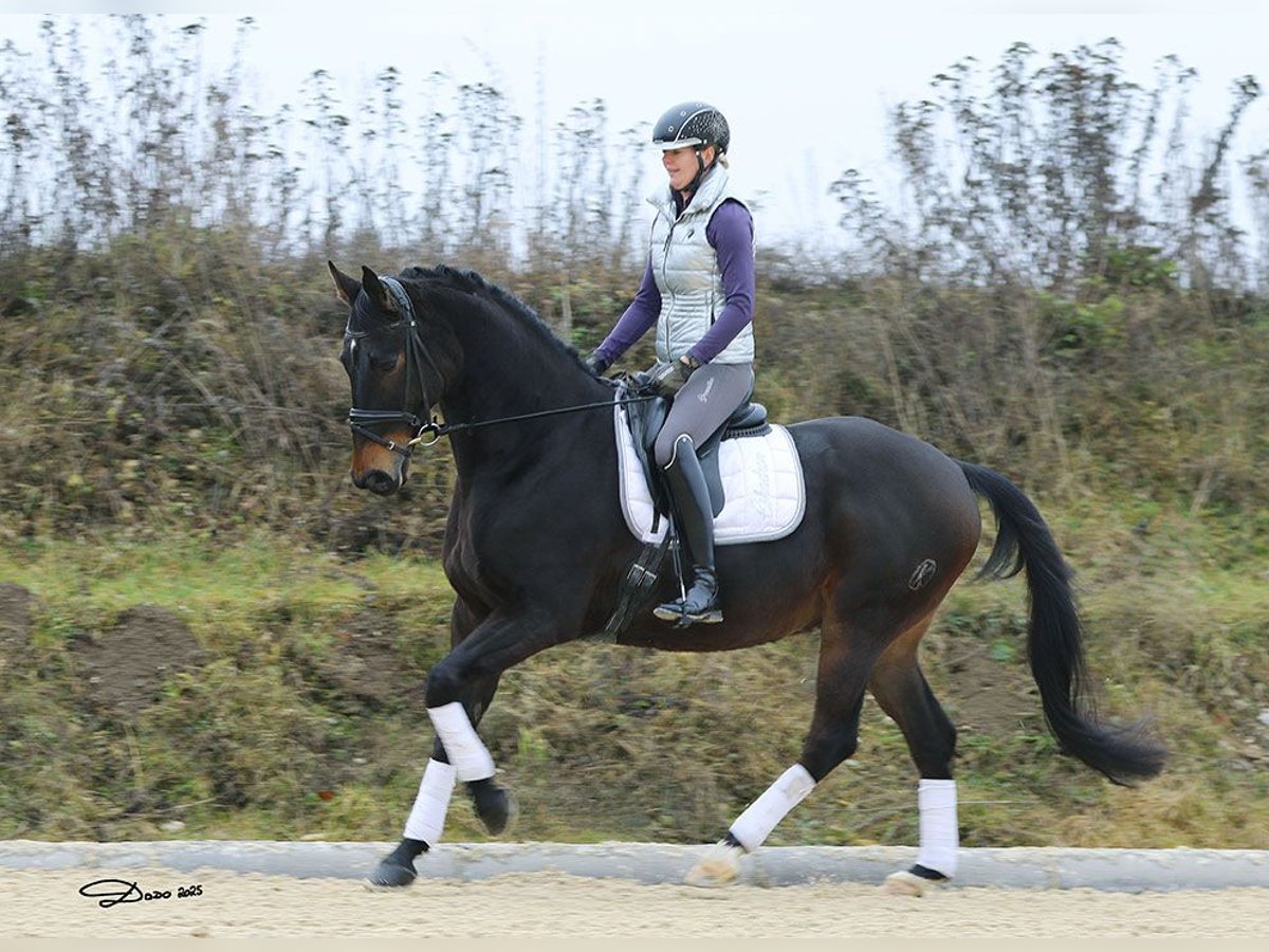 For sale is Sobor, a 10-year-old dark bay gelding, a Russian Warmblood standing at 16.1 hh. Sobor is a well-trained dressage horse that has already achieved placements in the M-level classes. He has been consistently worked correctly and demonstrates motivation and rideability. Thanks to his experience, calm demeanor, and balanced temperament, we can easily see him as an ideal beginner’s horse for competitive riding. He is familiar with the arena, remains composed during rides, and provides a confident feeling for the rider. Despite his sporting background, we envision Sobor primarily as a leisure horse in a family environment. He is a perfect family horse that enjoys hacking, trail riding, and varied work. In handling, Sobor is absolutely well-behaved and uncomplicated. He is very people-oriented, enjoys attention, and is happy to be pampered. He especially loves hacking out, whether alone or in a group. He is also very well-behaved with other horses in the herd and enjoys socializing with his equine companions. Over the summer, Sobor underwent a minor veterinary procedure. According to the attending veterinarian, no further restrictions are expected. For this reason, he is being sold well below his actual value. We are looking for a loving home where Sobor will be appreciated as a reliable partner and where he can bring joy in everyday life. Serious inquiries are welcome to contact us.