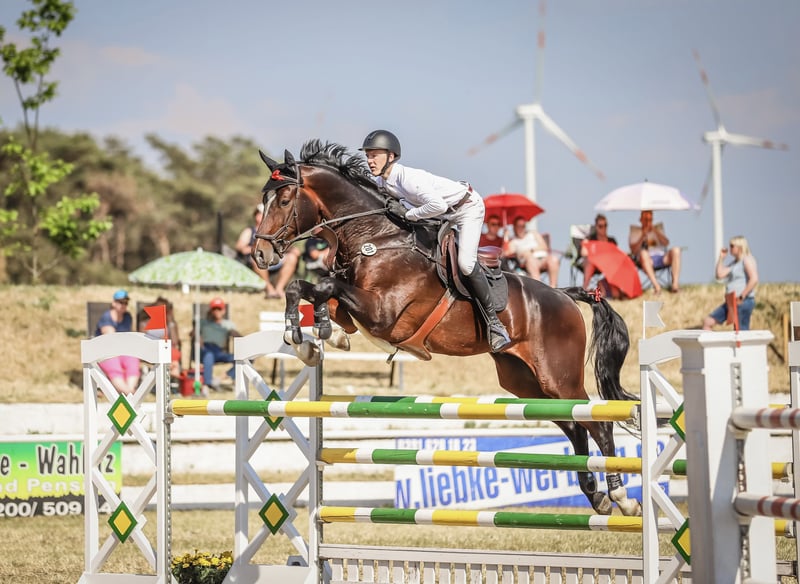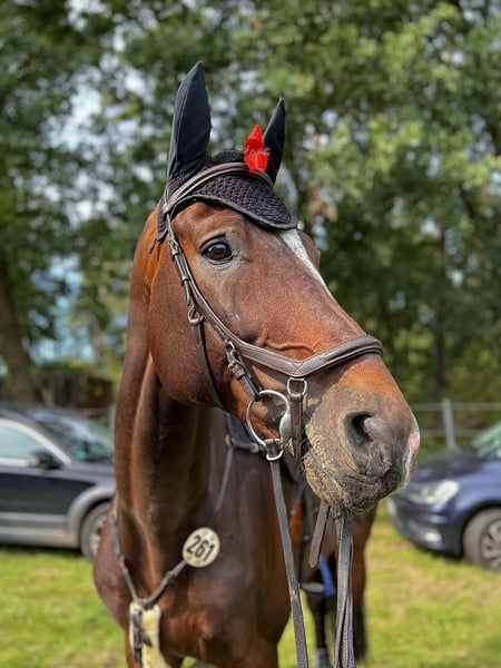 "Classic Balou" is a 14-year-old stallion from a family-owned breeding. Since 2019, he has grown up with a young rider, competing from Children's Jumping to the German Championship for Young Riders, making him well-suited as a teacher. He has been presented at competitions up to S** level. In this season, Balou has been placed multiple times at S* level and has won 5 times at M* level. He always wants to jump to the other side and helps the rider even when the distance is not perfect. In daily work, Balou is very uncomplicated: with a height of 1.80m, he is easy to ride in dressage, jumps changes, and can perform movements such as the counter canter. Further sporting successes: ✅ 2024 participant in the German Youth Championship in Riesenbeck ✅ Placed in S-level barrier jumping ✅ State Champion of Young Riders in Saxony-Anhalt For more information, please call ☎️ +49 152 01904917