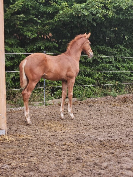 Wir bieten ein außergewöhnliches, typvolles und bewegungsstarkes Hengstfohlen aus bester Dressurabstammung zum Verkauf an. "Esco" überzeugt nicht nur durch seine Qualität, sondern auch durch seinen liebenswerten, menschenbezogenen Charakter und Charme. Geschlecht: Hengst Auszeichnung: Silberprämiert Abstammung: Extreme U.S. x Londontime Diese Fohlen bringt alles mit, was man sich für modernen Dressursport wünscht: Ausdruck, Elastizität, Takt, und natürlich viel Selbsthaltung. Vater: Extreme U.S. Ein absoluter Vererber mit internationalem Format. Extreme U.S. stellte bereits zahlreiche Spitzenfohlen und preisspitzen auf Auktionen. Beim KWPN-Fohlenchampionat entsandte er gleich sieben Nachkommen aus seinem ersten Jahrgang - darunter den Sieger sowie weitere Spitzenfohlen. Mutter: Londontime Londontime steht für souveränen, modernen Dressurnachwuchs mit hervorragender Grundgangartqualität, korrektem Fundament und viel Rittigkeit. Sie war Champion bei Reitpferdechampionat in Elmlohe und später Auktionsspitze in Verden. "Esco" ist eine hochinteressante Option für Sport und Zucht und eignet sich ideal für Käufer, die in Qualität investieren möchten.