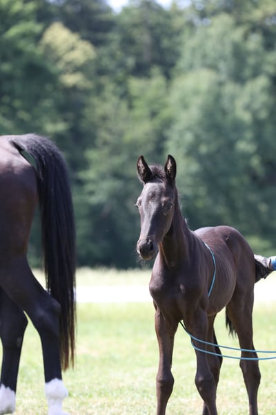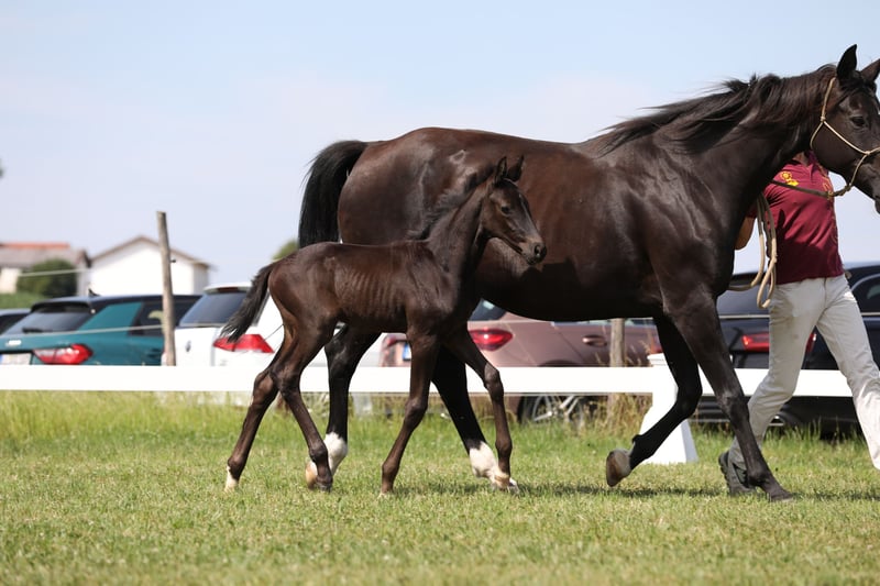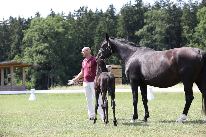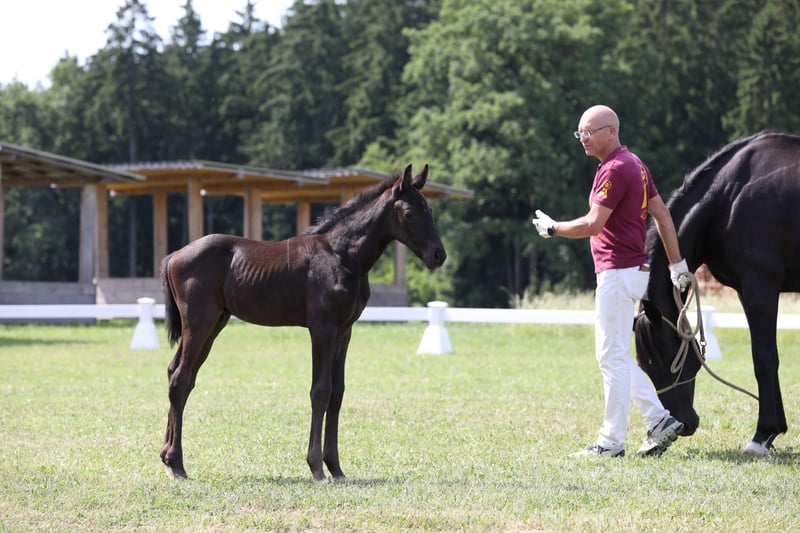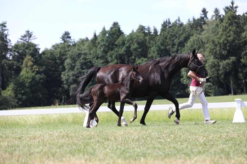 Here we offer a black colt by FLORICELLO OLD out of the Hanoverian state premium and elite mare SAPHIRA by SANDRO HIT x DONNERHALL x PIK BUBE x FUTURO. The foal is in perfect health, has a refined physical appearance, is jet black, and moves with ease. Born on May 29, 2025. The mother of the foal is a direct sister to the mare HEIDEBLUME, who is also the mother of the current Aachensieger ZONIK PLUS. The mother of the foal has been awarded elite mare status and DSP premium mare status due to her own sport-successful offspring. Her most successful offspring include SCHWARZE PRINZESSIN by NEGRO, who has been successful at S* level, and JOHN F. KENNEDY by JOHNSON, who has won at M** level. The grandmother of the foal, StPrSt. DOREEN by Donnerhall, is registered in Hanover with a score of 10 for her walk. This expansive walk is consistently found in her descendants. The colt can remain with us for upbringing if needed. For serious inquiries, please call directly: 0172 - 839 66 50 - Rainer Lechl.