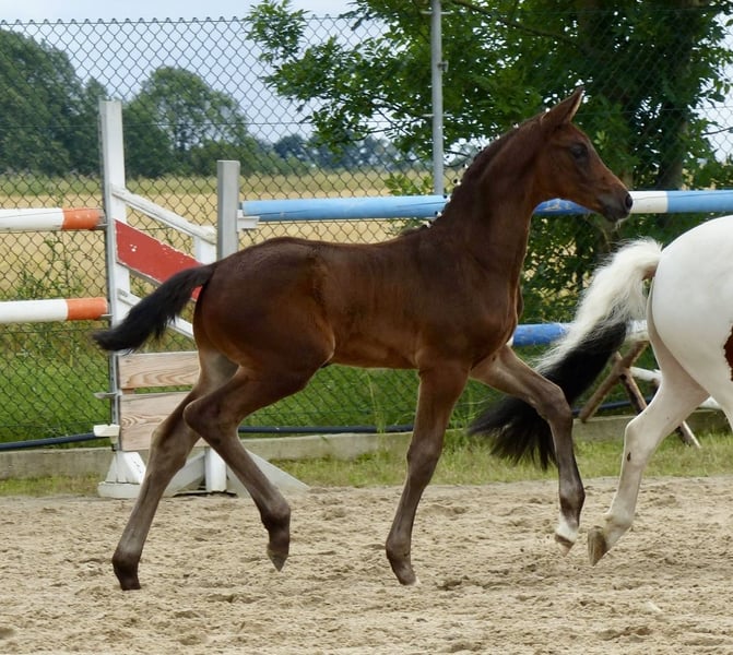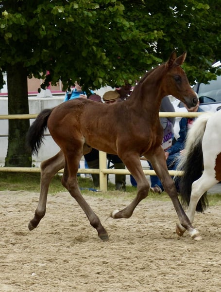 Sales foal pedigree: Comanchero/ Livester/ Contract ( Livester is a Lordanos/ carthago ) Born 8.5.2024 Currently approx. 1.28m Out of the Celessya Verband premium mare with mare performance test, this comes from the stallion dam Comtess who was selected in 2021 a Diamant de Plaisir I son over Munich which took place in Neustadt/ Dosse because of Corona. Sold at auction to Max Kühner, currently under the saddle of Helmut Schönstetter. Details of the dam line: M: Verband premium MM: Stallion dam by Dovani ( De Luxe de Plaisier) out of Diamant de Plaisir I