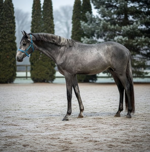 Von Chappeloup de Luze T x Rolls Royce – dieser junge Hengst wächst noch und zeigt fantastisches Potenzial für die Zukunft. Er hat saubere Beine, hervorragenden Charakter und einen ruhigen, menschenbezogenen Temperament. Obwohl noch roh und in der Entwicklung, liebt er Aufmerksamkeit und Pflege, was ihn sehr handlich macht. Er steht ruhig beim Hufschmied und ist an das Longieren gewöhnt. Frei springt er sehr talentiert und mühelos, zeigt hervorragende Technik und Athletik. Ein korrekt gebautes, schönes junges Pferd mit einer vielversprechenden Zukunft. Vollständig gesund und fehlerfrei, bereit für vorsichtiges Training. Für weitere Informationen und Videos kontaktieren Sie bitte: +36 20 990 5063