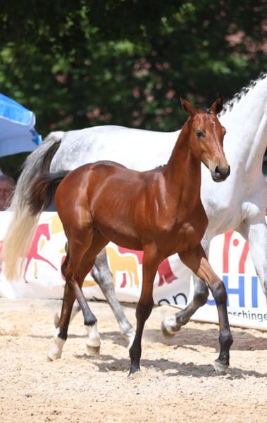 Upsala ist ein bildschönes, großrahmiges und typvolles Hengstfohlen von Unstoppable de la Pomme x Cornet Obolensky. Im täglichen Umgang sowie beim Schmied zeigt er sich ausgesprochen brav, menschenbezogen und unkompliziert. Er möchte immer gefallen, ist korrekt gebaut und überzeugt mit drei sehr guten Grundgangarten. Vater Mit Unstoppable de la Pomme präsentiert sich ein Nachwuchsvererber der Extraklasse, der alle Voraussetzungen für eine internationale Karriere im Springsport mitbringt. Ein Athlet von höchster Qualität – typstark, leistungsbereit, ehrgeizig und mit hervorragender Reflexe, Mut und Sprungkraft ausgestattet. Damit verkörpert er den modernen Sportpferdetyp in Perfektion. Sein Pedigree spricht für sich: Der sprunggewaltige Vater Udarco van Overis war selbst international bis 1,60 m unter der deutschen Amazone Sarah Nagel-Tornau (GER) erfolgreich. Die Mutter Gazelle de la Pomme war sportlich bis 1,35 m erfolgreich und stammt aus der renommierten Zucht des belgischen Zuchtpioniers Joris de Brabander (Stal de Muze / BEL). Sie ist zu 75 % verwandt mit dem internationalen Ausnahmehengst Vagabond de la Pomme (Pénélope Leprevost / FRA). In seiner ersten Turniersaison machte Unstoppable de la Pomme durch Siege und vordere Platzierungen nachhaltig auf sich aufmerksam. Auch beim 14-Tage-Test überzeugte er mit mehrfachen Bewertungen von 9,0, insbesondere in den Kriterien Springanlage und Leistungsbereitschaft. Sein erster Fohlenjahrgang zeigte sich ausgesprochen typvoll, bewegungsstark und wachstumsfreudig. Dieser de Muze-Stamm gilt als erfolgreichster Stutenstamm Belgiens und brachte zahlreiche internationale 1,60 m Grand Prix-Pferde hervor. Mutterlinie • 1. Generation: Holsteiner Stamm 1086 • 3. Generation: gekörter Hengst Dicontendro (USA 2016) v. Diarado • 4.–5. Generation: zahlreiche erfolgreiche Sportpferde bis S- und internationalen 1,60 m-Niveau, u. a. Calmiro 5, Chablis 105, Curiboh, FBW Coulthard, Tshakira 2, Captain Jack E, Chocolate E, Contact You und Charming Scarlett E. * Der Equidenpass wurde beantragt und wird noch vom Zuchtbuch bearbeitet, bitte rechnen Sie mit möglichen Verzögerungen.