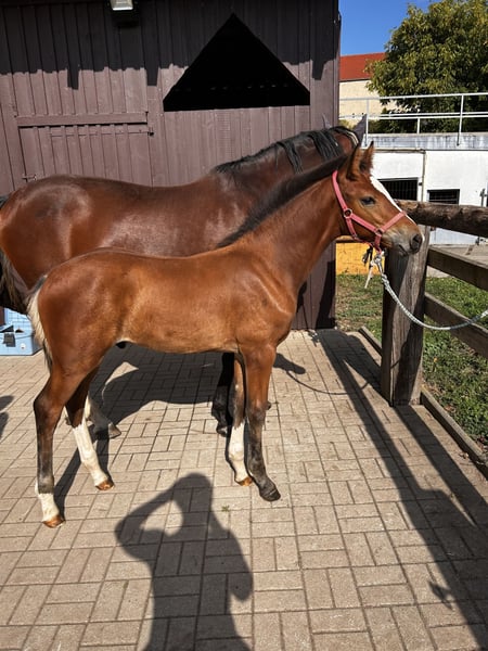 Zum Verkauf steht ein schickes Hengstfohlen mit bester Abstammung: Esmeraldo x Chin Quin x Pilot. Der kleine Mann, Anfang Juni geboren, überzeugt nicht nur durch seine elegante Erscheinung, sondern auch durch sein korrektes Fundament und seine gute Aufmachung. Er beherrscht das Fohlen-ABC bereits zuverlässig und zeigt sich im täglichen Umgang brav, mutig und sehr zutraulich. Mit seiner aufgeweckten Art bringt er alles mit, um später ein verlässlicher Partner im Sport oder in der Zucht zu werden. Eine Besichtigung ist nach Absprache jederzeit möglich – bei Interesse freuen wir uns über Kontaktaufnahme. Gern können auf Wunsch auch Videos zugesendet werden.