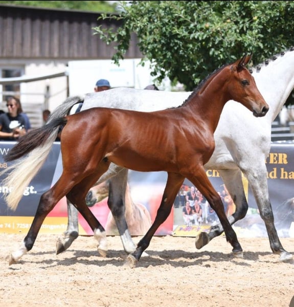 Upsala ist ein bildschönes, großrahmiges und typvolles Hengstfohlen von Unstoppable de la Pomme x Cornet Obolensky. Im täglichen Umgang sowie beim Schmied zeigt er sich ausgesprochen brav, menschenbezogen und unkompliziert. Er möchte immer gefallen, ist korrekt gebaut und überzeugt mit drei sehr guten Grundgangarten. Vater Mit Unstoppable de la Pomme präsentiert sich ein Nachwuchsvererber der Extraklasse, der alle Voraussetzungen für eine internationale Karriere im Springsport mitbringt. Ein Athlet von höchster Qualität – typstark, leistungsbereit, ehrgeizig und mit hervorragender Reflexe, Mut und Sprungkraft ausgestattet. Damit verkörpert er den modernen Sportpferdetyp in Perfektion. Sein Pedigree spricht für sich: Der sprunggewaltige Vater Udarco van Overis war selbst international bis 1,60 m unter der deutschen Amazone Sarah Nagel-Tornau (GER) erfolgreich. Die Mutter Gazelle de la Pomme war sportlich bis 1,35 m erfolgreich und stammt aus der renommierten Zucht des belgischen Zuchtpioniers Joris de Brabander (Stal de Muze / BEL). Sie ist zu 75 % verwandt mit dem internationalen Ausnahmehengst Vagabond de la Pomme (Pénélope Leprevost / FRA). In seiner ersten Turniersaison machte Unstoppable de la Pomme durch Siege und vordere Platzierungen nachhaltig auf sich aufmerksam. Auch beim 14-Tage-Test überzeugte er mit mehrfachen Bewertungen von 9,0, insbesondere in den Kriterien Springanlage und Leistungsbereitschaft. Sein erster Fohlenjahrgang zeigte sich ausgesprochen typvoll, bewegungsstark und wachstumsfreudig. Dieser de Muze-Stamm gilt als erfolgreichster Stutenstamm Belgiens und brachte zahlreiche internationale 1,60 m Grand Prix-Pferde hervor. Mutterlinie • 1. Generation: Holsteiner Stamm 1086 • 3. Generation: gekörter Hengst Dicontendro (USA 2016) v. Diarado • 4.–5. Generation: zahlreiche erfolgreiche Sportpferde bis S- und internationalen 1,60 m-Niveau, u. a. Calmiro 5, Chablis 105, Curiboh, FBW Coulthard, Tshakira 2, Captain Jack E, Chocolate E, Contact You und Charming Scarlett E. * Der Equidenpass wurde beantragt und wird noch vom Zuchtbuch bearbeitet, bitte rechnen Sie mit möglichen Verzögerungen.