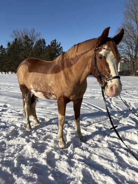With a very heavy heart, I am looking for a new home for my gelding Baloo (sport name Atari MP), where he will be loved, supported, and appreciated. Born in 2016, approximately 16.1 hands tall, Baloo is a German sport horse with a strong, harmonious build—a type that simply looks good to many riders. He is primarily bred for jumping (sired by Alvalon / Askari) and has competed up to L-level show jumping, with placements in A-level classes. However, from L-level height upwards, Baloo shows some uncertainties due to his small "hare-hearted" nature, which is why I have decided not to compete him beyond this level. In E and A classes, he is motivated, honest, and enjoys his work. Currently, at home, we are working on L-level dressage tests, and I see a lot of potential for his future in this discipline. I would love for him to be ridden by an ambitious leisure rider who can further develop his dressage skills, possibly with competition aspirations up to L in dressage, combined with jumping at E/A levels. Baloo is also familiar with cross-country obstacles and jumps them confidently and bravely, making him a promising candidate for eventing. Additionally, he has been extensively and variedly ground-worked, inspired by approaches from Michael Geitner and horsemanship principles. Whether free-longeing or long-reining, Baloo responds attentively and with enthusiasm. Bitless riding is no problem for him and is a natural part of his training. Baloo is an absolute sweetheart in handling: well-behaved, human-oriented, fearless, and simply pleasant. The farrier, vet, loading, or traffic do not disturb his calm. He is not dull but very sensitive to his rider’s mood and reacts incredibly subtly to body language. Under saddle, he is not a typical beginner horse—on the arena or in the indoor, he can become a bit more lively. However, with calmness, seat regulation, and meaningful activity, he is manageable. Out in the field, he is very relaxed. I often say: “He could have been standing for six weeks, I put a child on him, send him into the terrain, and I know he will bring him back safely.” Baloo has even completed a five-day trek of about 150 km, demonstrating his versatility. I can also very well imagine retraining him for Western riding. He currently goes barefoot but is also shod. No health issues are known to me; a pre-purchase exam is of course possible. I prefer Baloo to be kept in a paddock system. He can also be stabled at night with plenty of turnout during the day. He does not attend traditional riding schools and is only being offered because I want him to be supported in the best way possible for the long term. A jumping saddle can be purchased with him if interested. Baloo is not a “cookie-cutter” horse but a true treasure—and that is exactly the kind of home I am looking for him.
