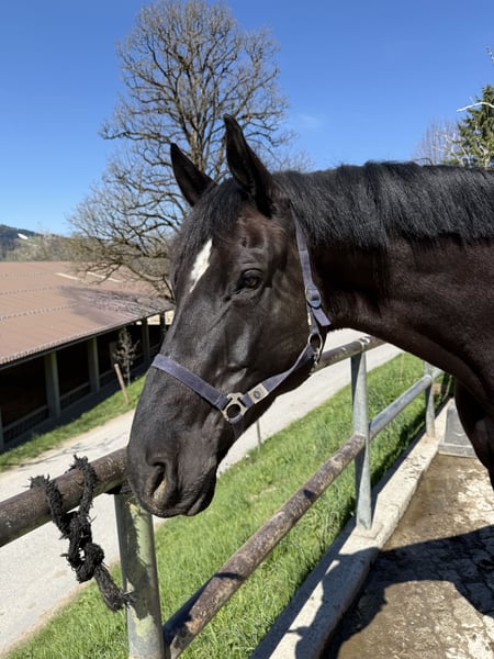Wir geben unseren Rappen Dakato in gute Hände ab. Bei uns im Schulbetrieb unter Erwachsenen, als auch unter Kindern gelaufen. Leider Arthrose vorne am Hufgelenk und nur noch als Freizeit-, Ausreitpferd nutzbar. Durch seine Größe deckt er auch wunderbar große Menschen ab. 4- Fach beschlagen.