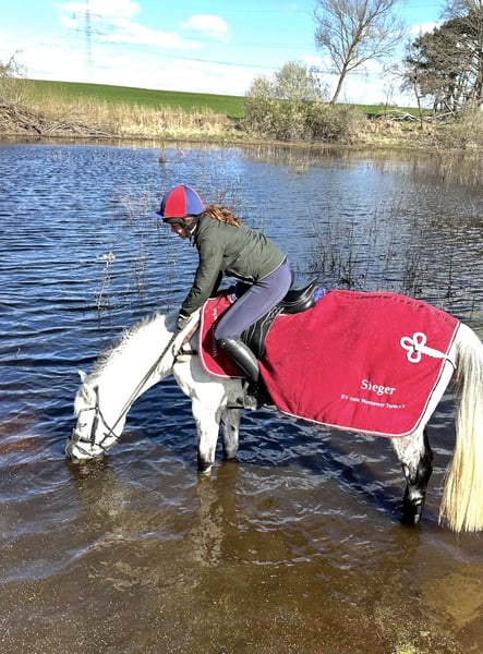 Cloud7 ist ein bei uns aufgewachsener Wallach mit einem sehr freundlichen, menschenbezogenen Wesen. Bereits jung war er unkompliziert im Umgang und ließ sich problemlos einreiten. In den letzten Jahren wurde er von einer jungen (10 bis 14 Jahren)Amateurreiterin geritten und auch auf Turnieren vorgestellt. Aufgrund eines neuen Pferdes und fehlender Zeit für zwei Pferde wird Cloud7 nun verkauft. Charakter & Eigenschaften: • sehr lieb und brav im Umgang • nervenstark und unerschrocken auf dem Reitplatz • ruhig auch in unübersichtlichen Situationen • zuverlässig beim Reiten, im Gelände sowie bei Boden- und Longenarbeit • ausreitsicher (alleine und in der Gruppe) • früher auch im Reitunterricht mit Kindern eingesetzt Cloud7 ist ein ehrliches, sensibles Pferd, das von einer ruhigen, klaren Reitweise profitiert und sich unter fairer Einwirkung sehr kooperativ und gelassen zeigt. Aktuell wird er regelmäßig geritten und präsentiert sich dabei durchweg brav. Gesundheit: • regelmäßig kontrolliert • aktuelle Rückenbilder/ vom Rücken vorhanden • Barhuf mit sehr guter Hufqualität • Boxenhaltung/offen Stall gewohnt Sportlicher Einsatz: •. Dressur/ Springen/ Vielseitigkeit A Niveau L Niveau A Niveau Wunschzuhause: Gesucht wird ein wertschätzendes Zuhause bei Reitern, die ein feines, liebes Pferd zu schätzen wissen. Probereiten: Probereiten bei ernsthaftem Interesse möglich. ➡️ 30 € Kosten (werden bei Kauf verrechnet). Videos & Standort: auf Anfrage