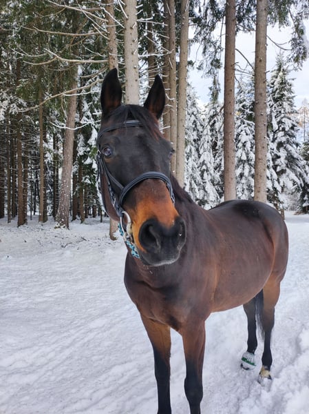 11-Year-Old Gelding Seeking a New Challenge Fredi is a German sport horse with dressage lineage, standing approximately 1.70 meters. He has been trained up to level A according to FN standards, but has not been further promoted. Currently, he is kept in an open stable with a mixed herd and is stabled at night. He is easy to handle in daily interactions and shows no bad habits such as biting or kicking. He is shod with four shoes and is trailer-safe. Unfortunately, he has been diagnosed with asthma, which does not affect his performance. Fredi needs a rider with experience in large horses who can continue to develop him. He enjoys varied work and is happy to be ridden daily. He will bring all his accessories, including saddle and inhaler.