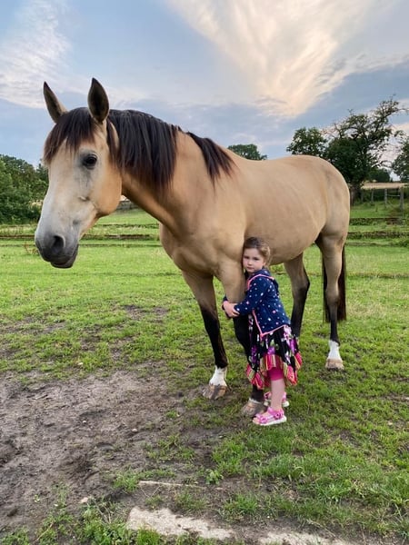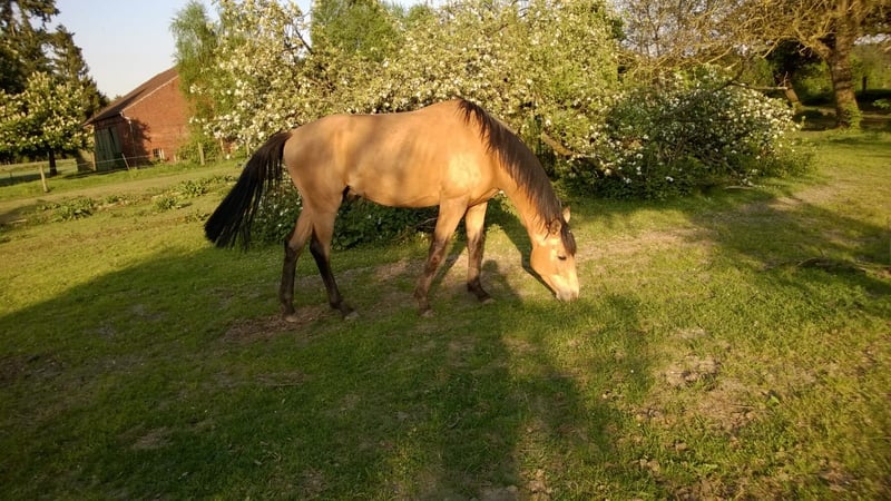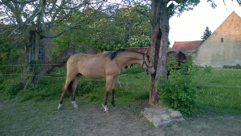 With a heavy heart and for personal reasons, I am offering my beloved sport horse gelding, Spirit. He has been with me since January 2016 and has never experienced anything negative. He came to my family as a weanling. He enjoys the company of children and dogs and is farrier-friendly. He was a stallion until the age of 8 and was intended for licensing with the Trakehner breed. Spirit is familiar with lunging and has been ridden lightly due to time constraints, which he always handles very calmly. His pedigree emphasizes versatility, and he is absolutely gentle and very people-oriented. He goes through fire with his owner without hesitation. Brennpunkt MD is 1.70 meters tall and impresses not only with his special color but also with his wonderful character. But the best thing about him is not his appearance, but his heart of gold. Since it is very difficult for me to part with him, I kindly ask for sincere and serious inquiries.