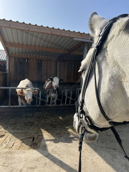 Zum Verkauf steht ein bezaubernder Schimmelwallach von Sir Bedo, der mit drei soliden Grundgangarten überzeugt. Besonders hervorzuheben sind sein ausgeglichener Charakter, ein Partner auf den man sich in jeder Lebenslage verlassen kann. Im täglichen Umgang zeigt er sich stets kopfklar, freundlich und unkompliziert. Auch mit Kindern ist er immer rücksichtsvoll und trägt sie behutsam durch das Viereck. Bisher wurde er freizeitmäßig in der Dressur auf sicherem L-Niveau ausgebildet, zeigt aber viel Potenzial für eine weiterführende Ausbildung. Auch am Sprung ist er immer motiviert. Aktuelle Röntgenbilder sind vorhanden. Bei Interesse oder für weitere Informationen stehe ich gerne zur Verfügung. Gerne per WhatsApp oder telefonisch. Besichtigungen und Probereiten sind nach Absprache möglich.
