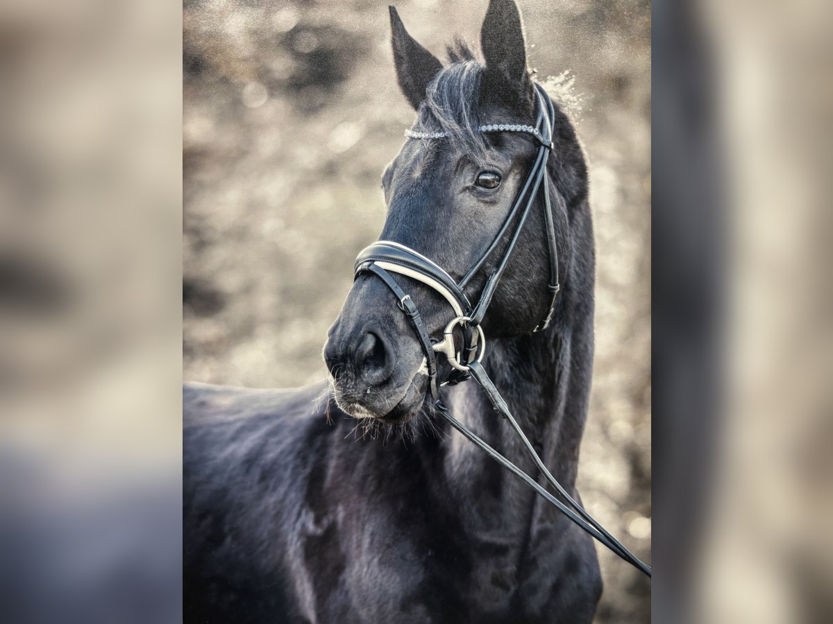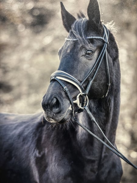 Da Vinci, Black Gelding by Diacontinus x Competent With mixed feelings, I am looking for a new home for my wonderful Da Vinci, one that can give him the attention and development he deserves. - Gelding | 10 years old | Black | 16.1 hh - Pedigree: Diacontinus x Competent - Placed in M-level dressage | Talented in jumping | Hunter type Da Vinci impresses not only with his elegant appearance and impressive movement but especially with his absolutely gentle nature. He is always easy to handle, both in the stable and under saddle, and consistently shows willingness to perform and a calm demeanor. I have personally trained and cared for him with much love and patience since he was 2 years old – making this decision all the more difficult. Da Vinci should continue to be supported and bring joy, but unfortunately, I no longer have the time to give him the attention he needs. I am looking for a caring home where he can continue to work happily, whether in dressage, jumping, or hacking.