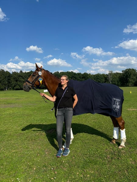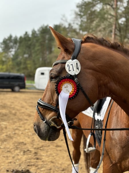Questo splendido castrone, figlio di Quaterback, è dotato di 3 buone andature, con particolare attenzione alla sua galoppata. Ha un'espressione enorme e desidera sempre compiacere. Grazie alla sua affidabilità e al suo carattere facile, è piacevole da montare e si adatta quindi idealmente a giovani che vogliono assaporare l'atmosfera di un concorso, o anche a cavalieri ricreativi che cercano un cavallo da fiducia. È molto sensibile, intelligente, ascolta e pensa sempre. Ideale è quindi un cavaliere su cui possa contare completamente. Non è adatto a professionisti o come cavallo da scuola! Il castrone ha eccellenti qualità da cavallo tuttofare. Ama saltare ed è stato addestrato fino alla classe L. Salta davvero sempre. Il salto non è stato ulteriormente sviluppato, ma è stato occasionalmente incluso nell'allenamento per varietà. Inoltre, è stato regolarmente montato in campo aperto, dove dimostra anche di essere un cavallo di assoluta fiducia. In particolare, ama le passeggiate nel bosco, meglio se attraverso il sottobosco. Nella dressage è stato regolarmente piazzato con le mie figlie nelle classi E e A*/** e ha anche vinto. Nel 2023, mia figlia maggiore è diventata vicecampionessa di Berlino con lui nella classifica individuale e nel 2024 nella classifica a squadre. Nella dressage, padroneggia tutte le lezioni della classe L. Il castrone è tenuto in ottime condizioni. È stato dal maniscalco ogni 6 settimane, regolarmente dal dentista, sverminato due volte all'anno e vaccinato secondo le linee guida FN (incluso herpes). Anche nell'alimentazione si è sempre prestata attenzione a fornire minerali sufficienti. L'abbiamo acquistato a 7 anni e non è mai stato malato o zoppicante. Attualmente passa la notte in una box con paddock e durante il giorno in un paddock, a volte in compagnia di un altro castrone. Conosce tutte le forme di allevamento, sia stalla aperta che pascolo diurno in branco, non è un problema. È assolutamente sociale, compatibile con il branco e ama giocare, quindi una sistemazione esclusivamente in box senza contatti sociali non sarebbe adatta a lui. Viene ceduto perché mia figlia maggiore si è trasferita per motivi di lavoro con il suo cavallo e l'altra ha abbandonato l'equitazione per mancanza di tempo. Viene ceduto solo a mani migliori. Per informazioni serie, siamo raggiungibili sia telefonicamente che tramite WhatsApp al numero 0174 9391946.