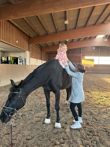 With a heavy heart, we are seeking a very special person or a loving family for our 11-year-old, impressive 1.80 m tall black gelding, who will give him the attention and affection he so richly deserves. This wonderful gelding is a true heart horse – incredibly people-oriented, sensitive, and always eager to do his best. His gentle nature and honest character make him a loyal companion with whom one can face life's ups and downs. Whether on relaxed rides in nature, during gentle groundwork, or in daily activities – he enjoys every moment with "his" person. He is confidently trained up to L** level in dressage and already performs movements of M level. He consistently shows motivation and a willingness to learn, without losing his balanced and reliable temperament. Due to his size, he occasionally experiences tension in the sacroiliac joint area, which has been treated accordingly. Current X-rays are available and show no abnormalities. With appropriate training and loving care, this can be well managed. We wish for him a home where he is not only seen as a sport partner but as a true family member – with people who recognize his special soul and appreciate him for who he is. For further information, we would be very happy to hear from you by phone at 01723125143.