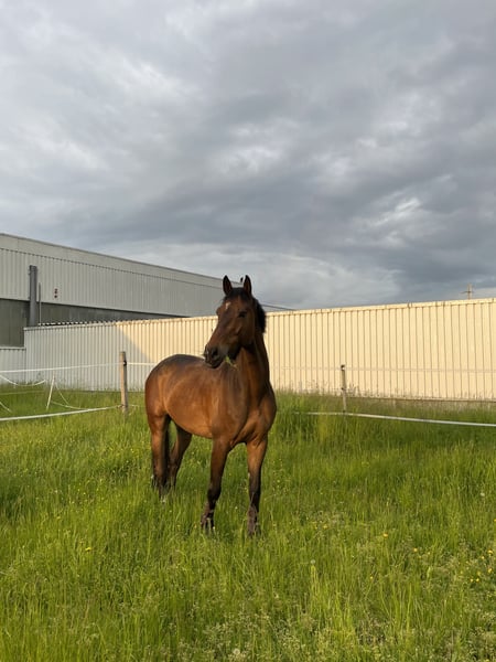 Colorado is a 2014-born gelding who quickly wins hearts with his gentle nature. He is being sold as a leisure or companion horse and is looking for a place where he can be loved, cared for, and appreciated as a loyal companion. His greatest passion is trail riding. He feels most comfortable outdoors. Whether ridden, as a lead horse, in the dark, or in the snow, Colorado remains calm and reliable at all times. He also enjoys work in the riding arena, but his heart clearly belongs to nature. Due to a suspensory ligament injury, Colorado underwent surgery in 2023 (nerve severance). He is rideable as usual and can be well occupied in his leisure time, but he is no longer suitable for sport. In everyday life, he proves to be a very sweet and well-behaved gelding. His greatest happiness is spending the entire day on pasture with his horse friends. For Colorado, I am looking for a place filled with love where he can settle in and enjoy his life peacefully. He is not a sport partner but a lifelong friend. *Place before price!* If interested, additional pictures and videos can be gladly provided.