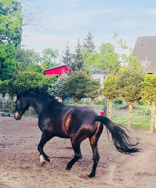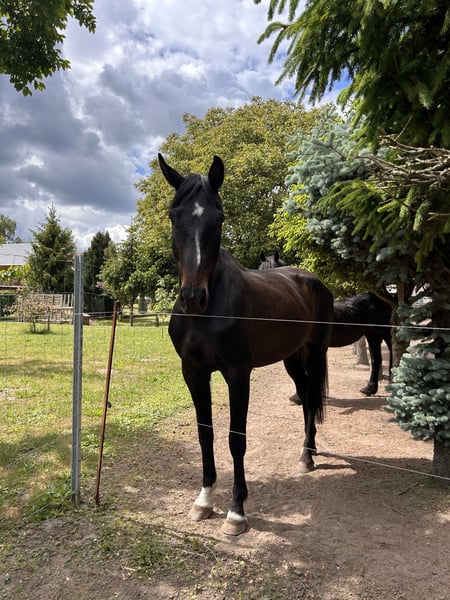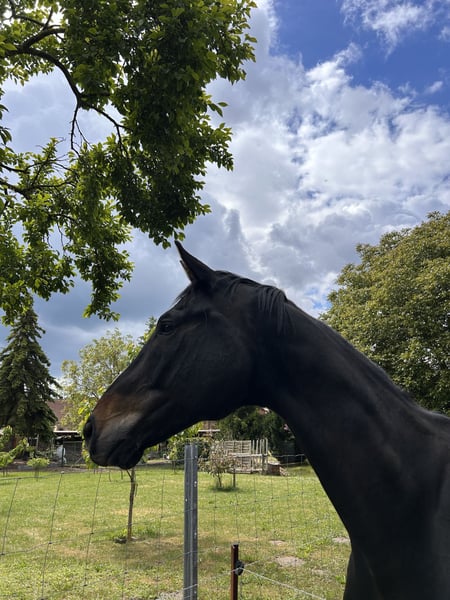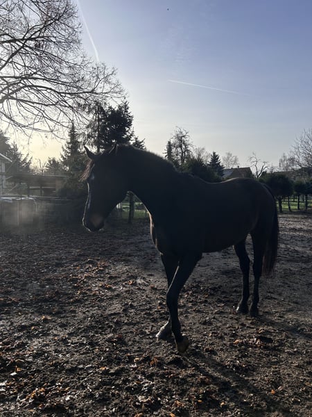 Ein Herz auf vier Hufen sucht ein neues 5 Sterne Zuhause – Deutsches Sportpferd Wallach (2013, v. Bretton Woods) Manchmal muss man schweren Herzens loslassen, um dem, den man liebt, das Beste zu schenken. Unser wunderschöner Wallach, ca. 183 cm, sensibel sucht nun ein Für-immer-5 Sterne Zuhause, in dem er einfach so sein darf wie er ist. ❤️ Über ihn • Deutsches Sportpferd Wallach, geb. 2013 • Vater: Bretton Woods • Im Umgang benötigt er eine erfahrene Hand, Vertrauen und Zeit • Kennt Sattel, Trense und Longenarbeit • Wird aktuell geritten, (nur im Gelände it erfahrener Begleitstute) zeigt aber bei Überforderung deutlich seine Grenzen • Braucht Routine, Vertrauen und Struktur • Steht aktuell in einer gemischten Herde, bevorzugt kleine, stabile Gruppen • Benötigt 24/7 Heu Er ist Ekzemer, hatten wir aber die letzten Jahre mit angepasster Fütterung gut im Griff. Er lernt schnell und hat typisch Sportpferd viel Energie. Beim Ausreiten ist er sehr umweltorientiert. War seitdem er in meinem Besitz ist auch nie ernsthaft krank oder lahm. Physio/Osteo war im Oktober da. Entwurmt. Er möchte gearbeitet werden, und mit genügend Vertrauen und Routine könnte er sogar als Voltipferd Freude bereiten. Was wir uns für ihn wünschen: Ein Zuhause wo man ihn schätzt, fördert und strukturiert arbeitet. Erfahrene, pferdeverständige Hände unbedingt erforderlich. Offenstall (kleine, stabile Gruppen bevorzugt) evtl. Nachts Box ⚠️ WICHTIG: KEIN PROBEREITEN– Kennenlernen am Boden möglich Er wird nicht verschenkt – wir suchen ein wertschätzendes, liebevolles Zuhause, in dem er einfach er selbst sein darf und wo man sich alles mit ihm GEMEINSAM erarbeitet. Ob er auf den Hänger geht, kann ich nicht sagen, haben wir nie benötigt, könnte mir aber vorstellen, dass das ein kleines Drama wird. Warum wir ihn abgeben: Die Gründe für den Verkauf teilen wir gern persönlich am Telefon – uns ist wichtig, dass er in die richtigen Hände kommt. PLATZ VOR PREIS