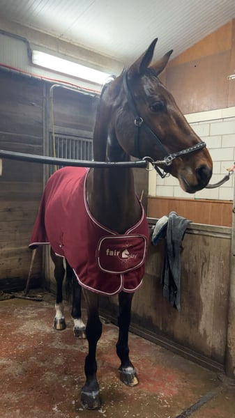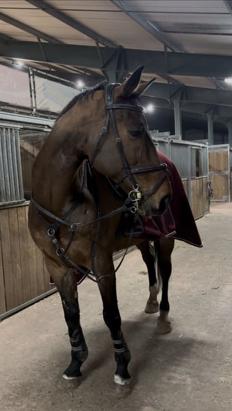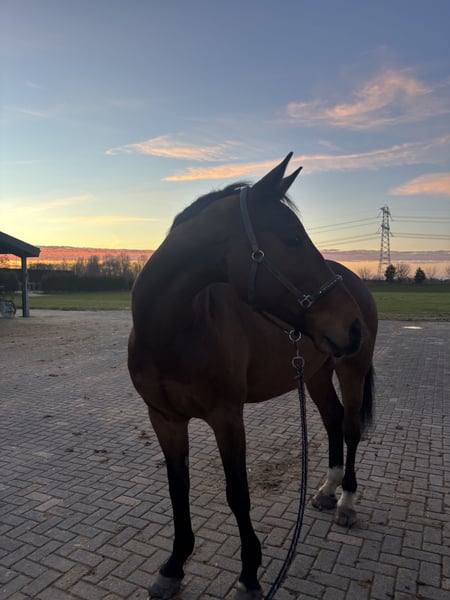 Soy el propietario de este caballo desde hace 3 años. Debido a mis estudios, con gran tristeza tengo que venderlo. Es un caballo muy dulce, pero con carácter y algo de chispa durante la monta. Por lo tanto, no es adecuado para una persona insegura. Además, está habituado al tráfico, a los remolques y es tranquilo con el herrador. En casa, ha saltado obstáculos de nivel M/L y en competición saltó Z antes de que lo comprara. Si estás interesado en más fotos o en un video, puedes contactarme en este número: 0636466426.
