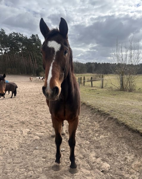 Herzenspferd sucht seinen Menschen ❤️ Dieser wunderbare 16 Jahre alter Wallach, ist im Umgang einfach ein absoluter Schatz. Er ist sehr menschenbezogen, anhänglich und genießt jede Form von Zuwendung. Ob Putzen, Kuscheln oder einfach Zeit miteinander verbringen – er ist immer mit ganzem Herzen dabei und baut eine enge Bindung zu „seinem“ Menschen auf. Im täglichen Handling zeigt er sich brav, freundlich und unkompliziert. Er möchte gefallen und ist mit viel Liebe und Sensibilität ausgestattet. Im klassischen Schulbetrieb ist er jedoch nicht richtig aufgehoben. Die vielen wechselnden Reiter sowie die Unruhe in der Gruppe überfordern ihn mental. In solchen Situationen kann es vorkommen, dass er aus Stress buckelt. Dieses Verhalten ist kein Ungehorsam, sondern Ausdruck von Überforderung. Für ihn wünschen wir uns daher ein ruhiges, verlässliches Zuhause bei einer festen Bezugsperson. Mit Konstanz, Geduld und Vertrauen denken wir, entwickelt er sich zu einem unglaublich treuen Partner, der mit seinem Menschen durch dick und dünn geht. Er steht bei uns in einer gemischten Herde und abends in seiner Box. Ein echtes Herzenspferd, das einfach den richtigen Platz sucht ❤️