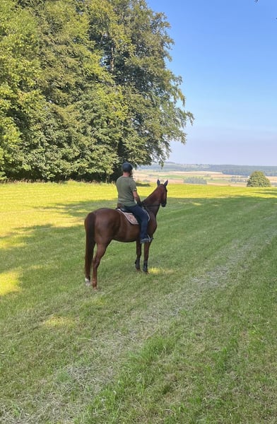 Zum Verkauf steht unser 16 Jähriger Rivero Gold, genannt Goldi. Er läuft seit 2020 bei uns im Schulbetrieb und sucht jetzt sein Fürimmer-Zuhause. Er geht lieb ins Gelände und macht auch sonst einen braven Job. Er ist Verlade-und Schmiedefromm und ist für jeden Spaß zu haben. Er ist sehr auch verträglich mit anderen Pferden, daher könnten wir uns auch vorstellen, dass er in einem Offenstall oder ähnlichem gut klar kommen würde. Verkauft wird er, da er für Anfänger und den ständigen Reiterwechsel nicht geeignet ist und jemanden braucht, der ihm eine klare Linie beim reiten vorgibt. Wir würden uns wünschen, dass er ein Zuhause findet, bei dem der Spaß an oberster Stelle steht und viel ins Gelände gegangen wird. Falls er ihr Interesse geweckt hat, können sie sich gerne unter +49 151 22455583 melden. Platz vor Preis