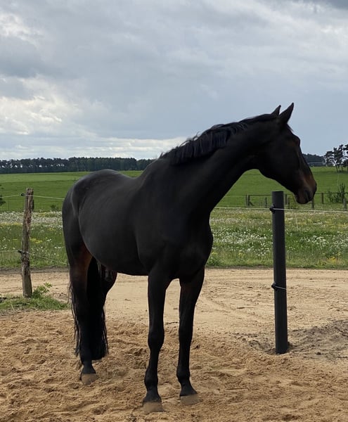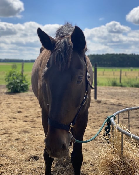 Leider ist unser Familienpferd aufgrund einer Sehnenverletzung und trotz darauffolgender Behandlung nicht mehr belastbar, weshalb wir uns dazu entschieden haben, für ihn ein neues, liebevolles 5*-Zuhause als Beistellpferd zu suchen. Luigi ist ein 18 jähriger DSP-Wallach und begleitet uns seit seinem 12.Lebensjahr. Bis zu seiner Verletzung ist er als Allrounder bereits in Dressur, Springen und Vielseitigkeit auf dem Turnier bis L unterwegs gewesen. Nun ist es allerdings für ihn an der Zeit, in den wohlverdienten Ruhestand zu gehen. Im Umgang ist er lieb und in der Herde ist er sehr verträglich. Er wurde regelmäßig geimpft und dem Zahnarzt vorgestellt.