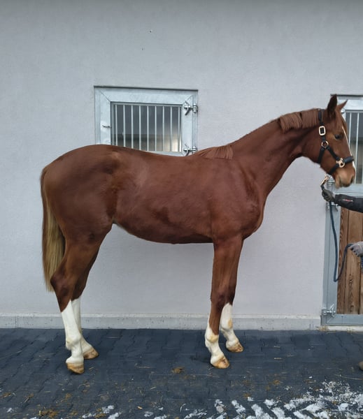 A true eye-catcher with potential: This exceptionally expressive 2-year-old dressage stallion combines three outstanding basic gaits with a clear uphill tendency and a natural self-carriage, rarely seen so harmoniously at this age. At first glance, he impresses with presence, a modern type, and a masculine appearance – exactly the profile one desires in a stallion prospect. "Edgar Forever" embodies everything sought after in high-level dressage: rhythm, suppleness, relaxation, along with an active hind leg and a powerful, body-driven movement. His prominent, performance-oriented pedigree underscores the overall package – a lineage that reflects both breeding value and sport quality. He is not only a highly promising candidate for licensing and stallion career but also an investment in the future for ambitious riders and breeders. A young talent with charisma, quality, and a clear perspective – perfect for those seeking a special horse.