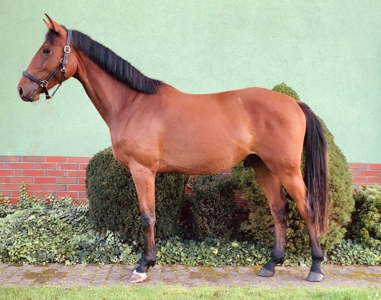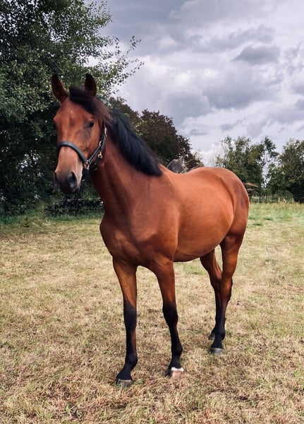 Zum Verkauf steht ein vielversprechender Wallach aus dem Jahr 2023 direkt vom Züchter. **Merkmale: - Rasse: Deutsches Sportpferd - Geschlecht: Wallach - Geburtsjahr: 04/2023 - Farbe: Brauner - Stockmaß: 160cm (zur Zeit/ noch im Wachstum) -Abstammung: von Balzaci, aus einer Staatsprämienstute von Monte Bellini -prämiert als Fohlen „Bente Balouz" ist ein ausgesprochen braver & umgänglicher junger Wallach, der dem Menschen gegenüber immer positiv zugewandt ist. Er kennt viele Umwelteindrücke (Kühe, Kinder, Trecker, Hunde etc.) und zeigt sich sehr gelassen. Hufschmied, Tierarzt, Verladen sind kein Problem. Er hat bis jetzt eine sehr gute Aufzucht im Herdenverband genossen mit viel Weidegang, gutem Futter inkl. Mineralfutter und ist geimpft (Infl. / Tet. / West Nil) sowie regelmäßig entwurmt. Bisher noch nie krank gewesen. Er kann ggf. zur weiteren Aufzucht bei uns bleiben. Seine 3 jährige Vollschwester zeigte sich in diesem Jahr total unkompliziert beim Anreiten (hat aktuell ein Stockmaß von 168cm, beide Elterntiere ebenfalls 168cm). Sein Vater ,,Balzaci" war bis zum 17. Lebensjahr im Springsport unter Felix Haßmann unterwegs. Erst 2020 - nach neun durchgehend extrem erfolgreichen Jahren - wurde er aus dem internationalen Top-Sport verabschiedet. Für weitere Informationen oder zur Vereinbarung eines Besichtigungstermins kontaktieren Sie mich bitte.
